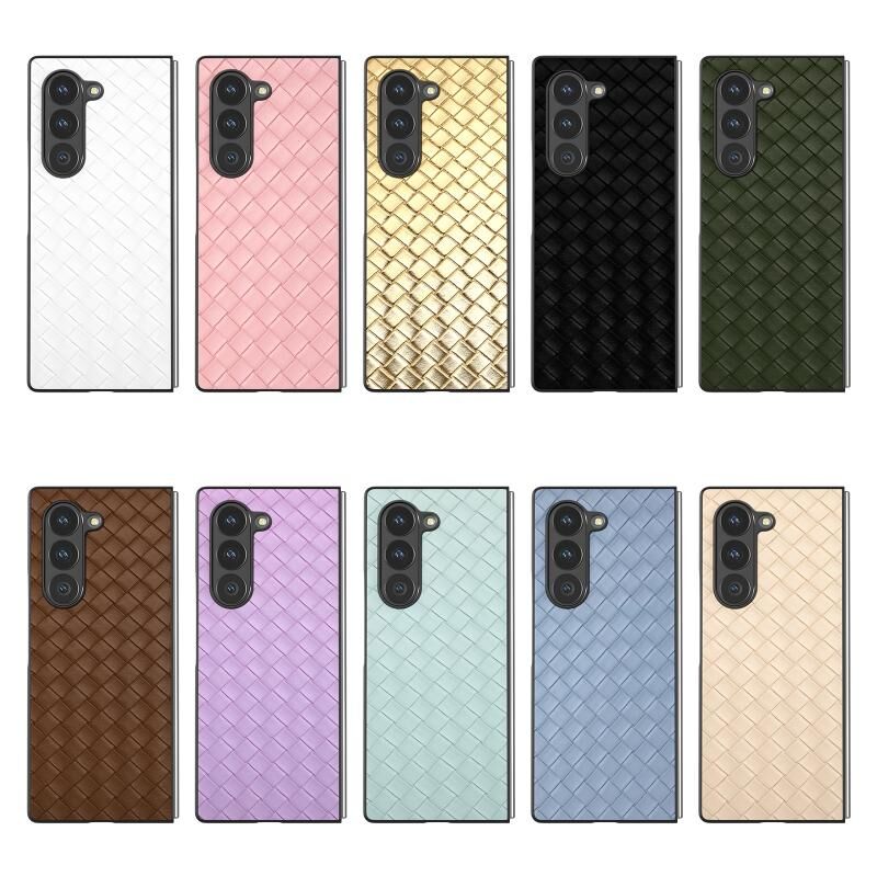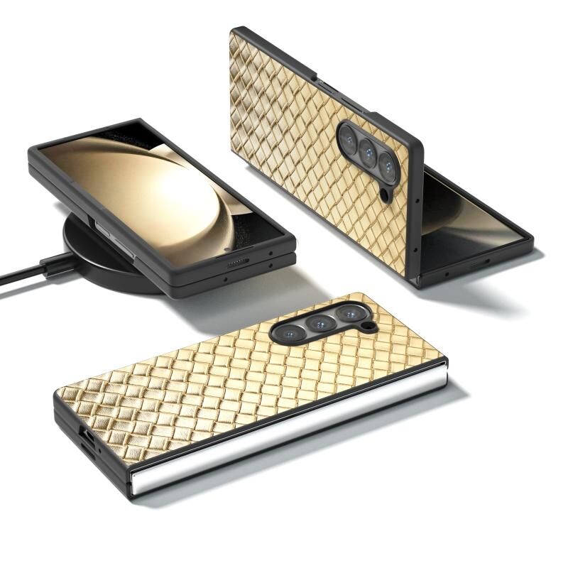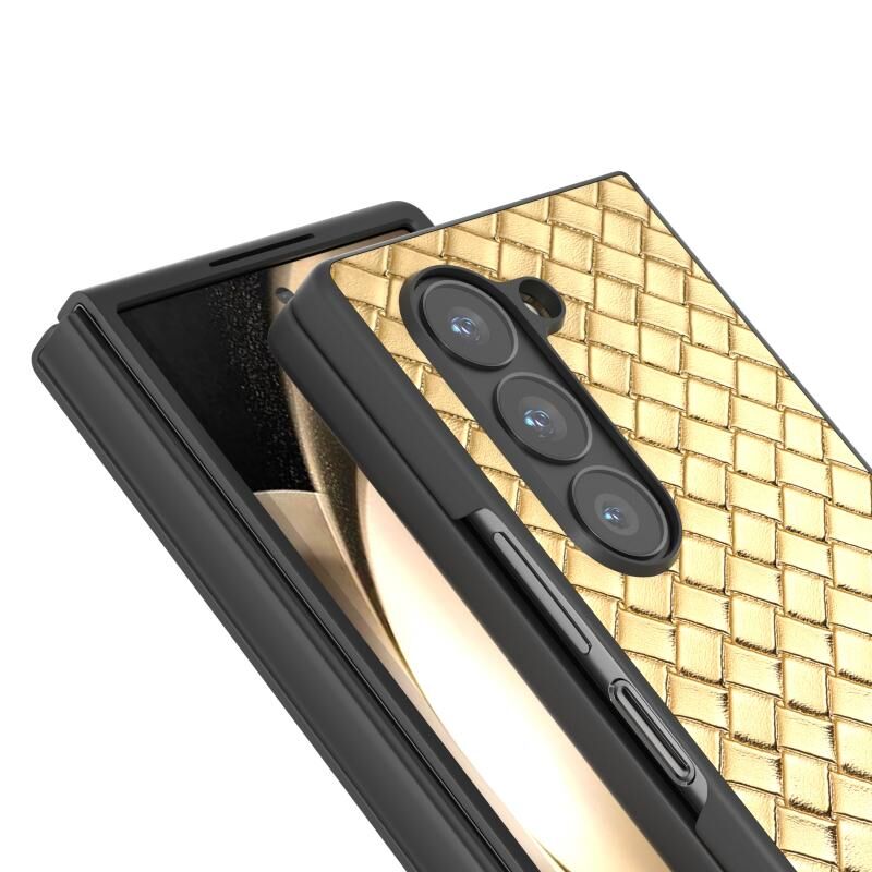 Για Samsung Galaxy Z Fold6 μαύρο πλαίσιο υφαντά υφή PU υπόθεση τηλεφώνου (χρυσό)