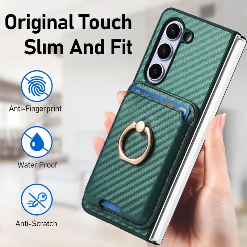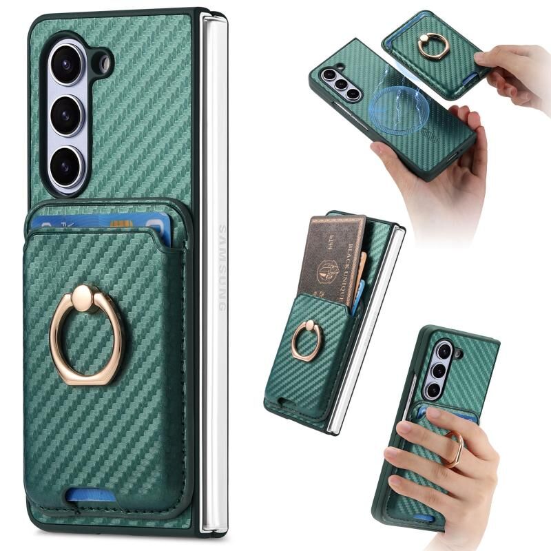 Θήκη τηλεφώνου Samsung Galaxy Z Fold6 από ανθρακονήματα με δακτύλιο και θήκη καρτών MagSafe (Μαύρο)
