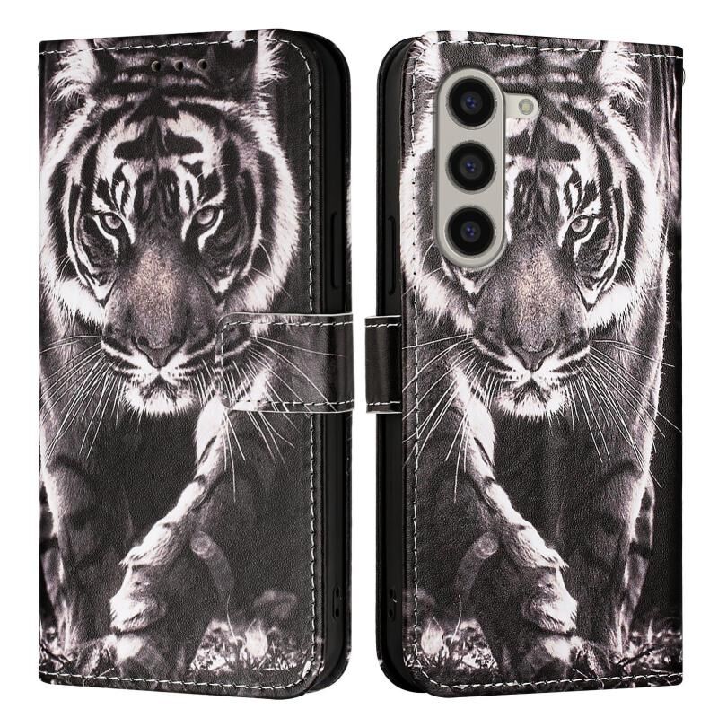 Θήκη τηλεφώνου Samsung Galaxy Z Fold6 από δέρμα με απλή ύφανση, πολύχρωμο σχέδιο (τίγρης ασπρόμαυρη).