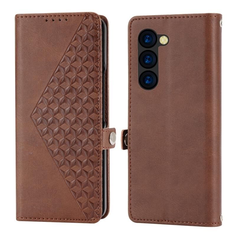 Για Samsung Galaxy Z Fold6 Cubic Grid Calf Texture μαγνητική δερμάτινη θήκη τηλεφώνου (καφέ)