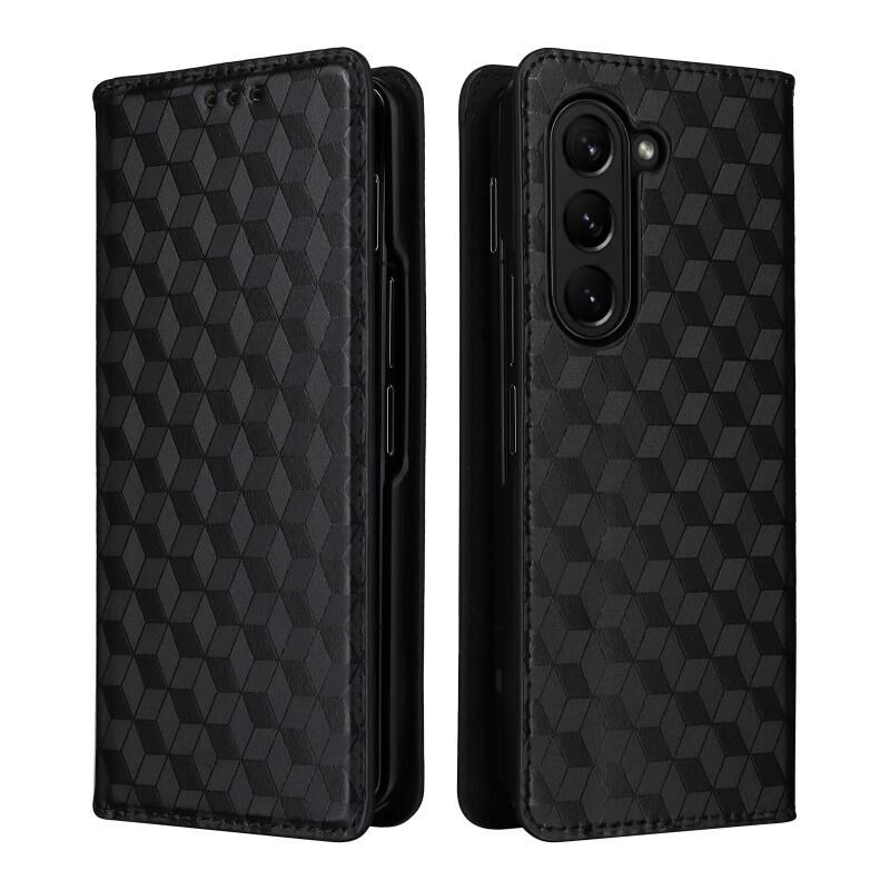 Θήκη τηλεφώνου Samsung Galaxy Z Fold6 από δέρμα με ανάγλυφη υφή κυβικού πλέγματος (Μαύρο)