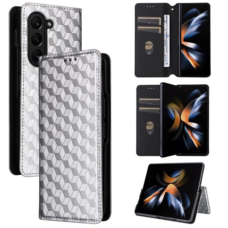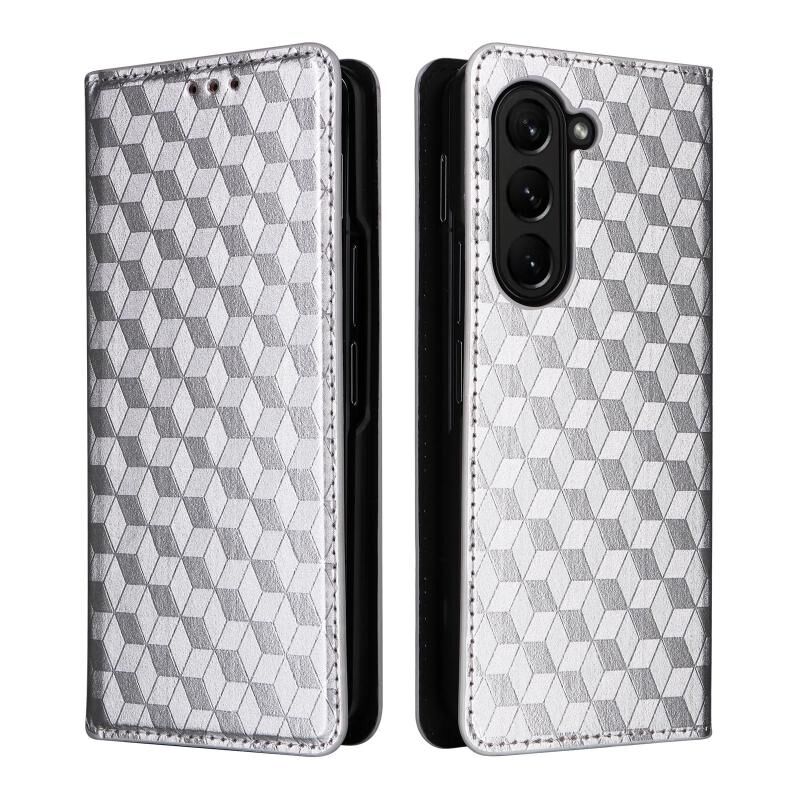 Θήκη τηλεφώνου Samsung Galaxy Z Fold6 από δέρμα με ανάγλυφη υφή κυβικού πλέγματος (Μαύρο)