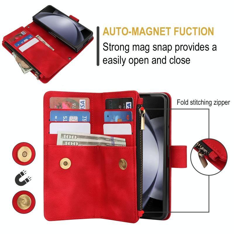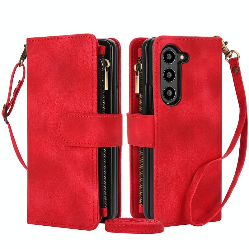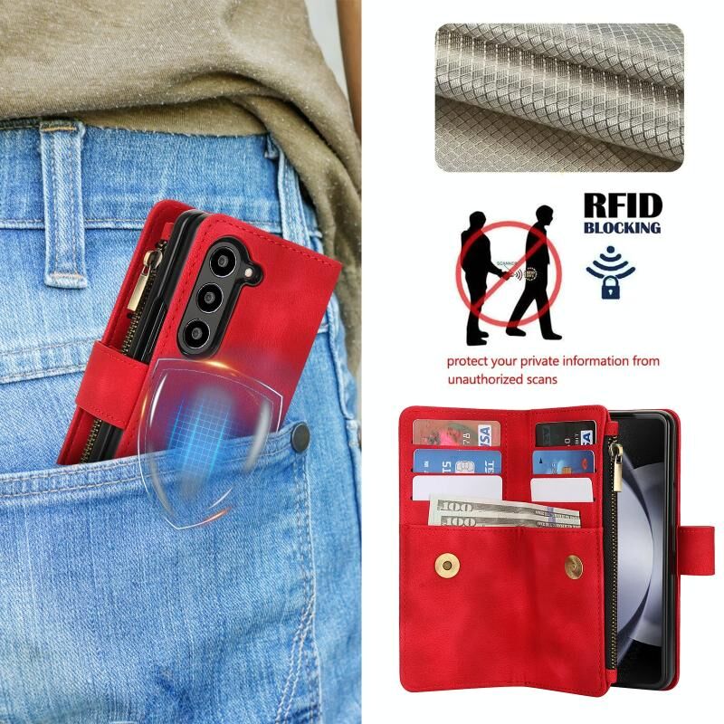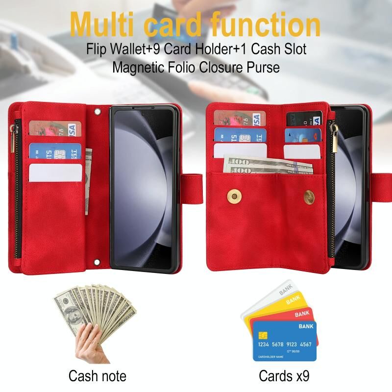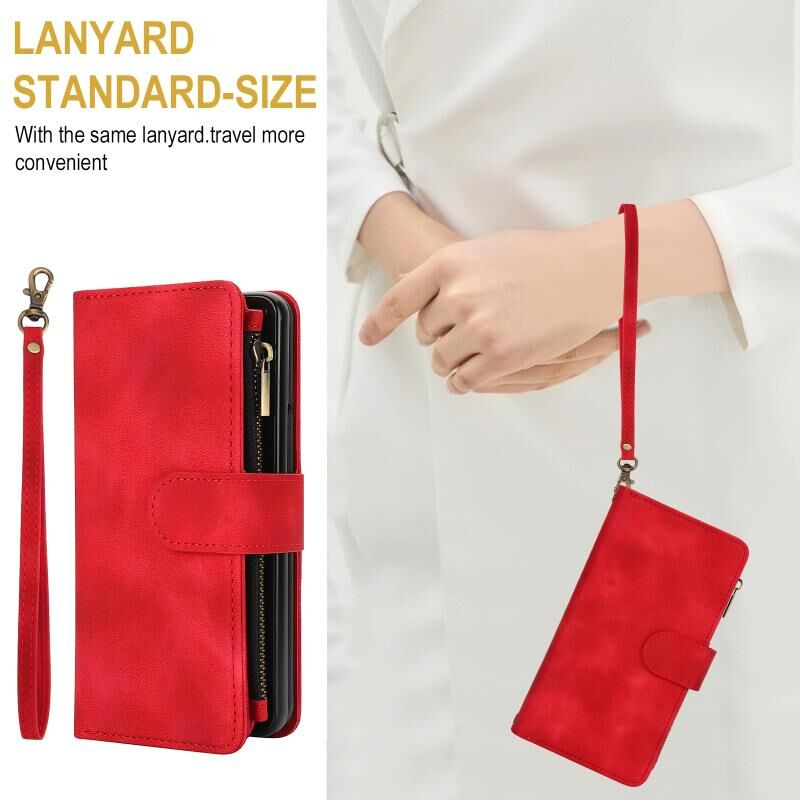 Για Samsung Galaxy Z Fold6 Dream 9-Card φερμουάρ πορτοφόλι RFID δερμάτινη θήκη τηλεφώνου με κορδόνι (κόκκινο)