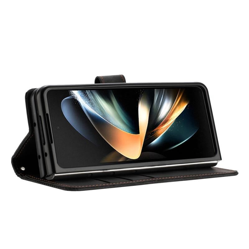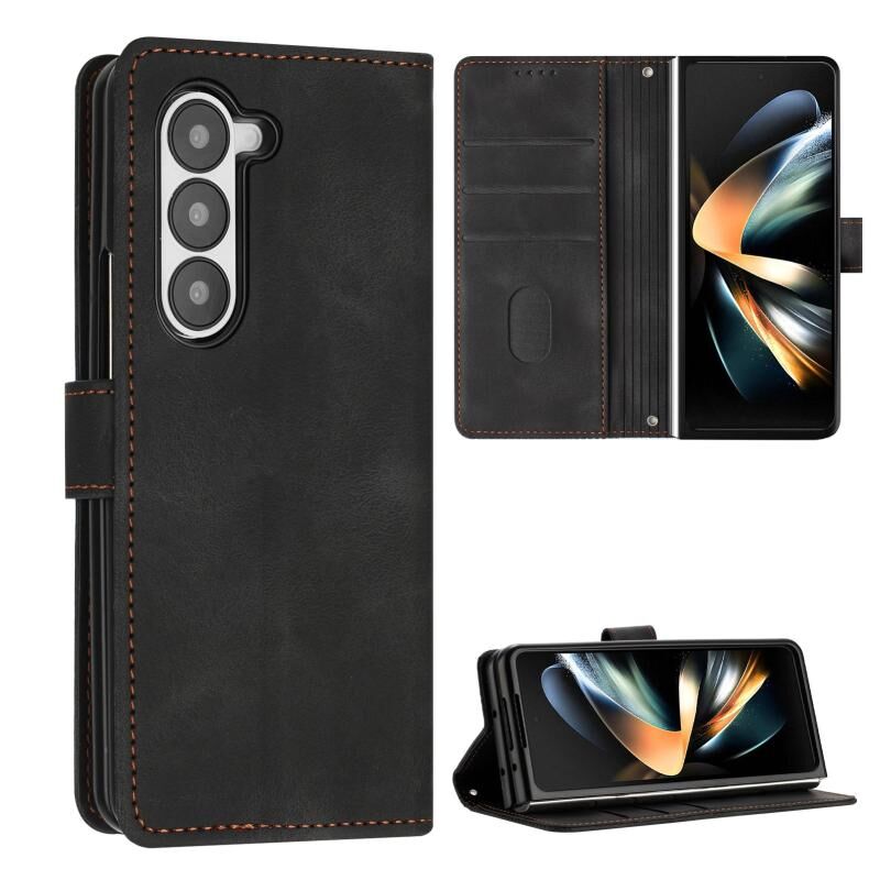 Για Samsung Galaxy Z Fold6 Dream Triangle Folding δερμάτινη θήκη τηλεφώνου με κορδόνι (μαύρο)