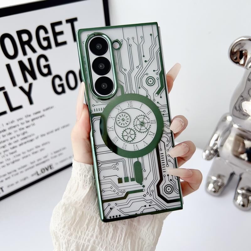 For Samsung Galaxy Z Fold6 Folding Plating Transparent Shockproof MagSafe Phone Case(Green)