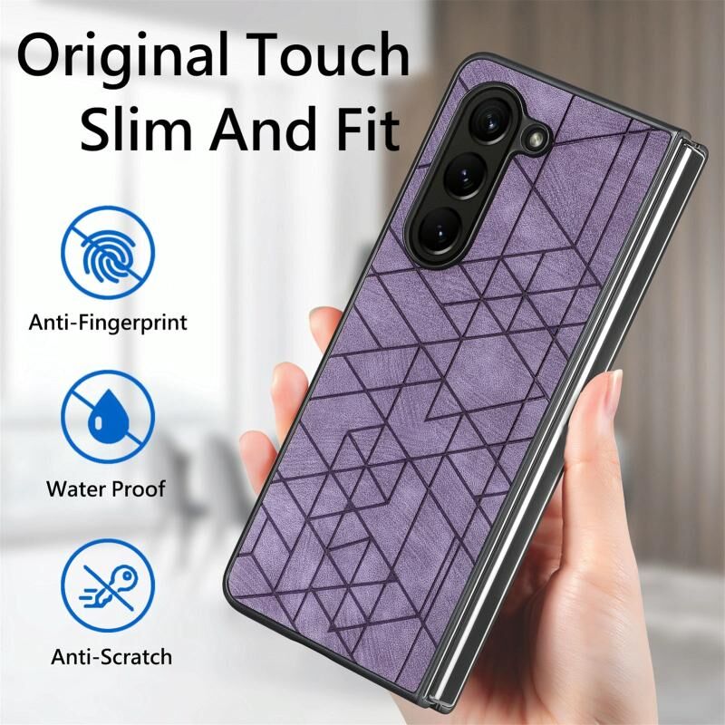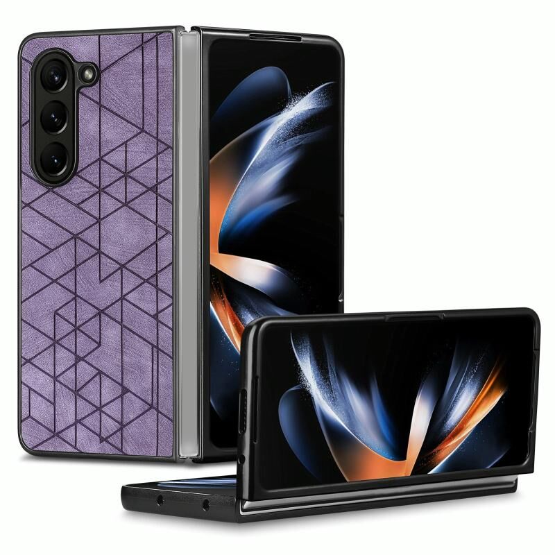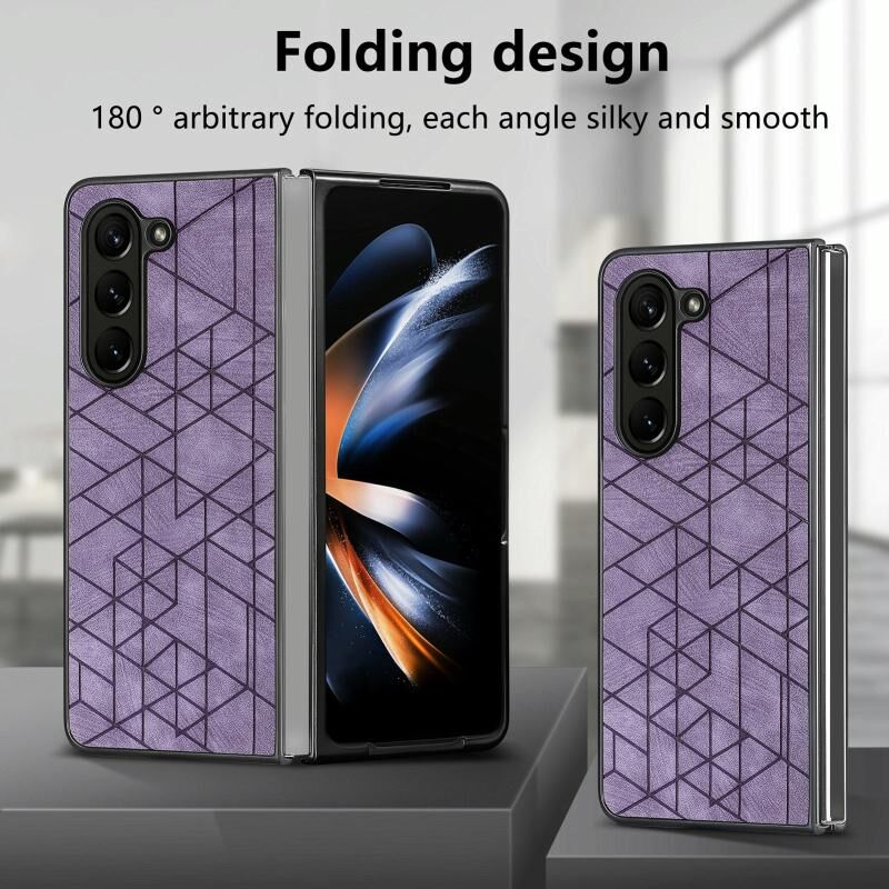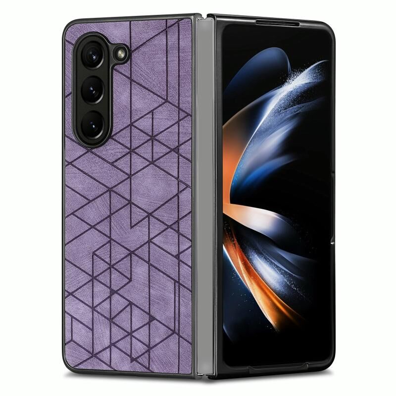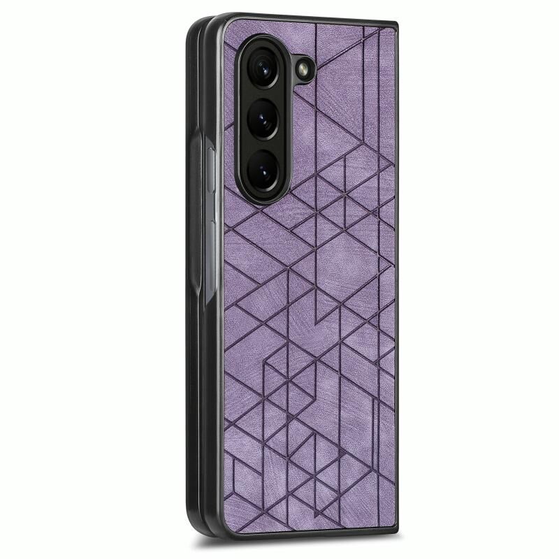 Για Samsung Galaxy Z Fold6 Γεωμετρική δερμάτινη πίσω θήκη τηλεφώνου (μωβ)