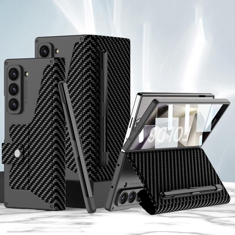 Για Samsung Galaxy Z Fold6 GKK Integrated Armor Flip Leather Case με υποδοχή για στυλό, δεν περιλαμβάνεται γραφίδα (Carbon Fiber Texture) (GKK)