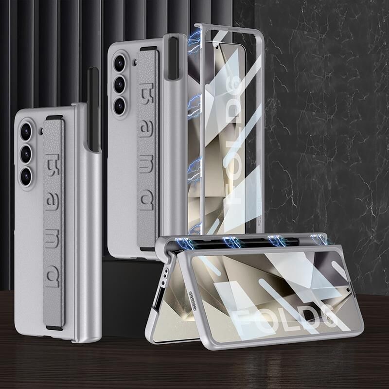 Για το Samsung Galaxy Z Fold6 GKK Ενσωματωμένη μαγνητική θήκη τηλεφώνου με μεντεσέ με λουράκι καρπού και θήκη στυλό (Mountain Gray) (GKK)