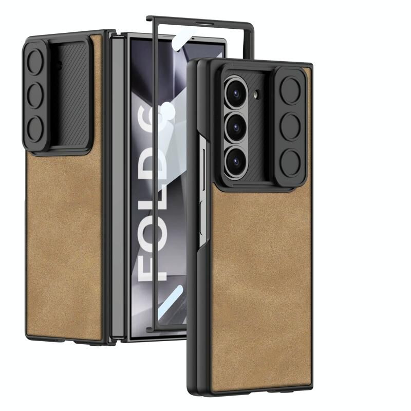Για το Samsung Galaxy Z Fold6 GKK Ενσωματωμένο εξαιρετικά λεπτό συρόμενο παράθυρο παγωμένη δερμάτινη θήκη τηλεφώνου (καφέ) (GKK)