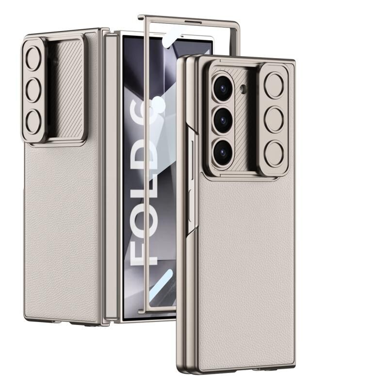 Για Samsung Galaxy Z Fold6 GKK Ενσωματωμένη θήκη τηλεφώνου με εξαιρετικά λεπτό συρόμενο παράθυρο από δέρμα (γκρι τιτάνιο) (GKK)