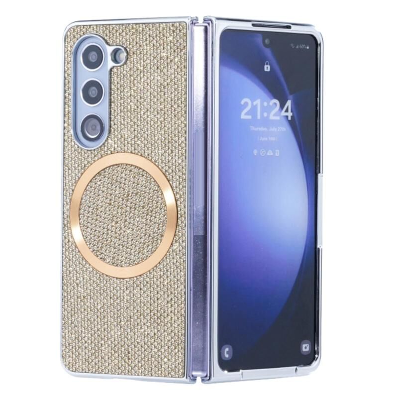 For Samsung Galaxy Z Fold6 Glitter Powder MagSafe Magnetic Fold Phone Case(Gold)