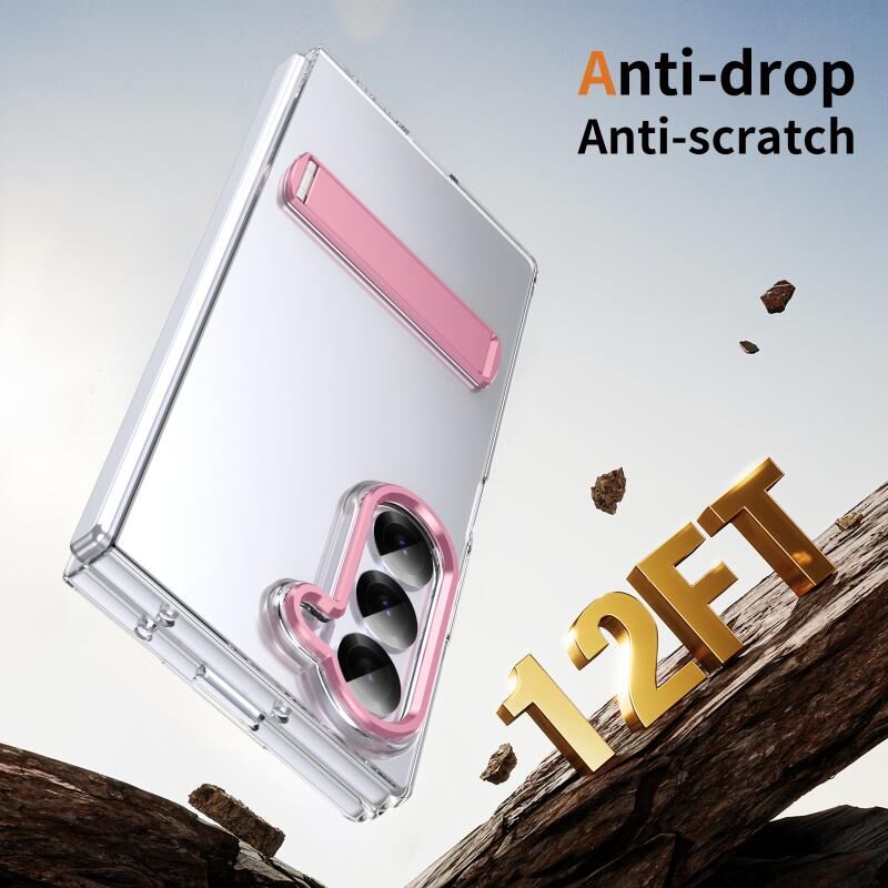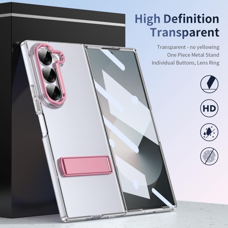 For Samsung Galaxy Z Fold6 Ice-Cold Holder PC Hybrid TPU Phone Case(Pink)