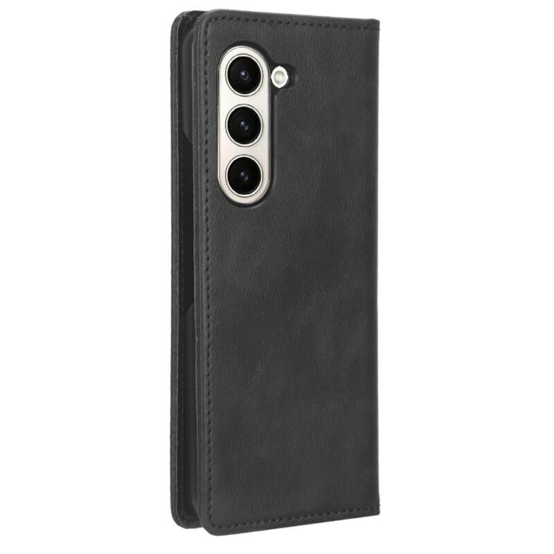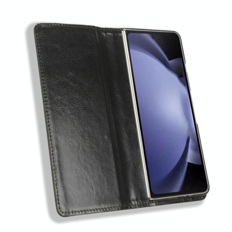Για Samsung Galaxy Z Fold6 μαγνητική πόρπη ρετρό υφή δερμάτινη θήκη τηλεφώνου (μαύρο)