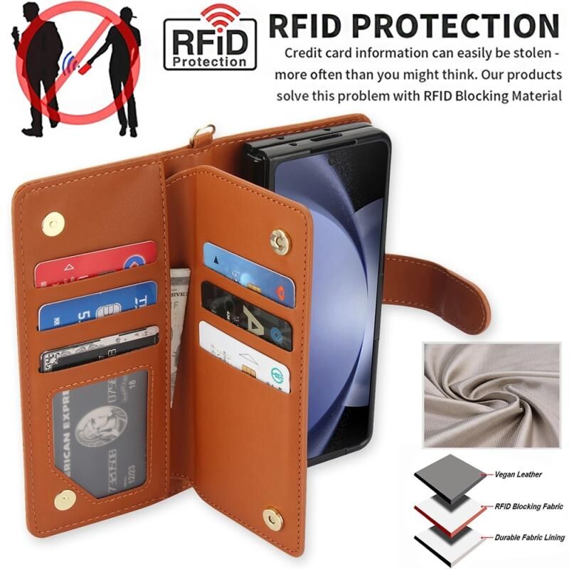 Θήκη τηλεφώνου Samsung Galaxy Z Fold6, Δερμάτινο Πορτοφόλι Πολλαπλών Καρτών RFID (Πράσινο)