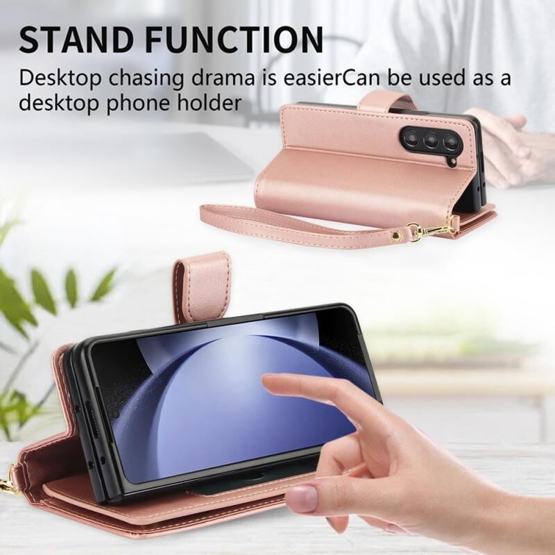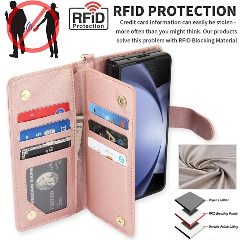 For Samsung Galaxy Z Fold6 Multi-Card Wallet RFID Leather Phone Case(Rose Gold)