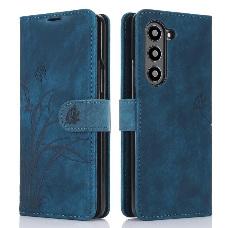 For Samsung Galaxy Z Fold6 Orchid Butterfly Embossed Leather Phone Case(Blue)