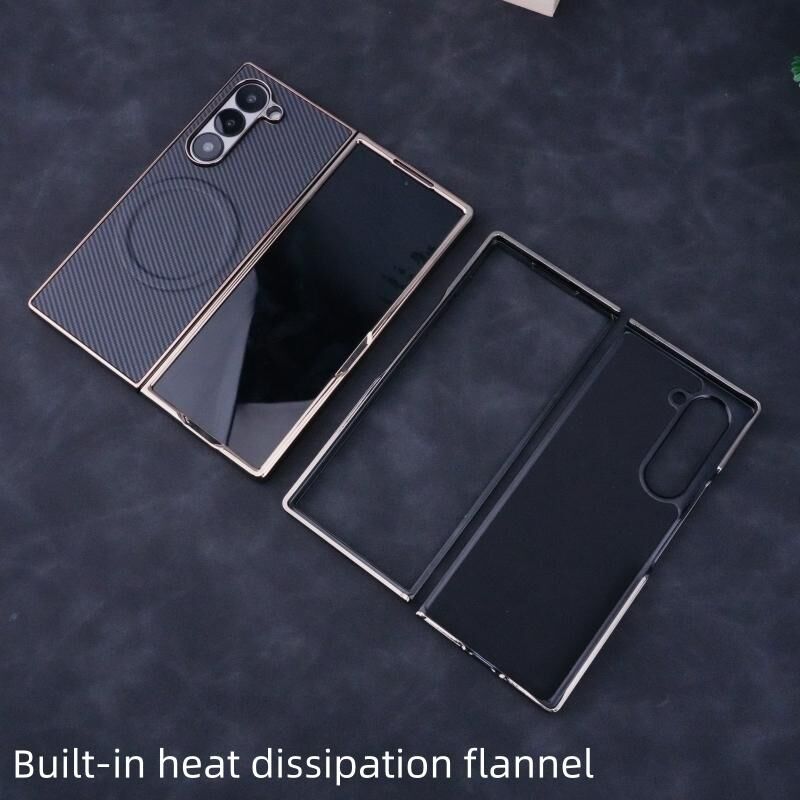 Θήκη τηλεφώνου Samsung Galaxy Z Fold6 με επιμετάλλωση, MagSafe, ανθρακονήματα (Χρυσός Τιτανίου)