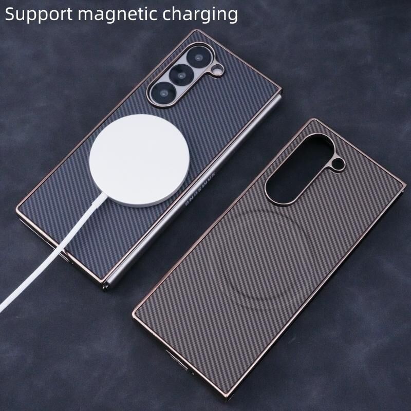 Θήκη τηλεφώνου Samsung Galaxy Z Fold6 με επιμετάλλωση, MagSafe, ανθρακονήματα (Χρυσός Τιτανίου)