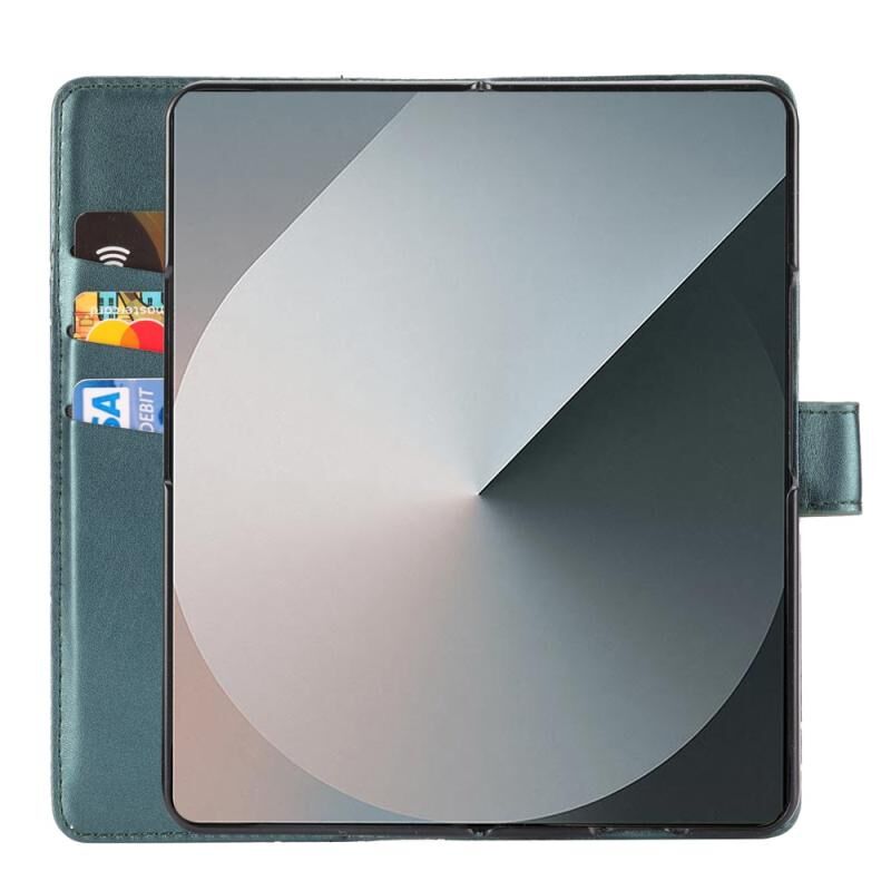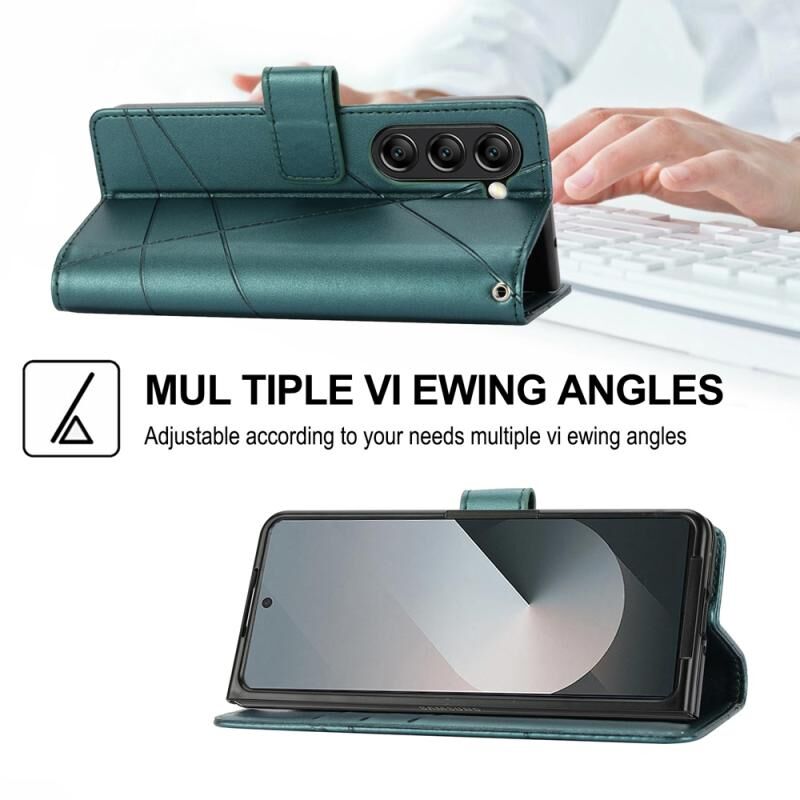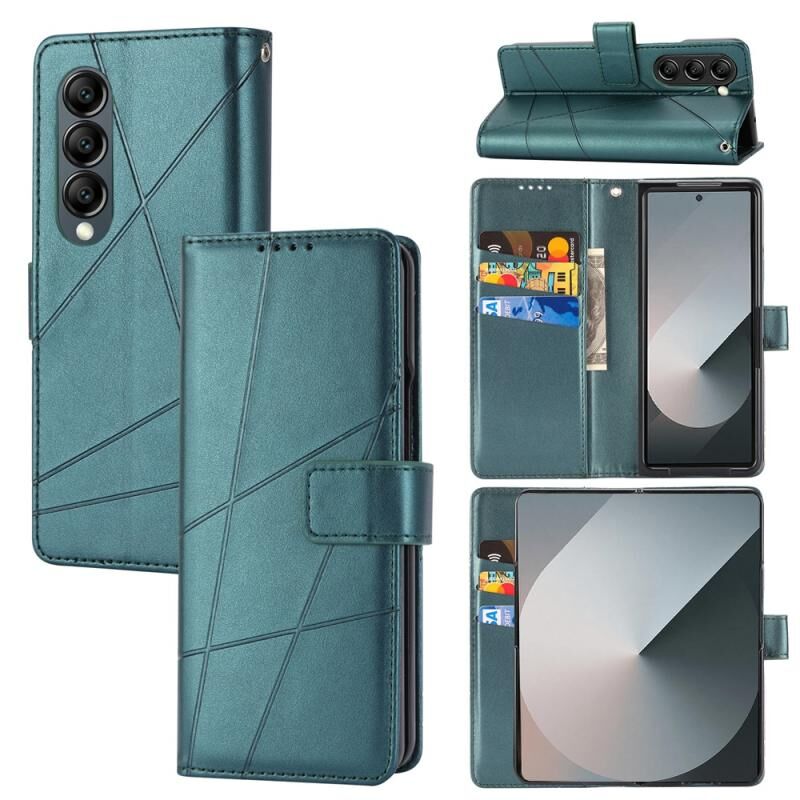 Θήκη τηλεφώνου Samsung Galaxy Z Fold6 από γνήσιο δέρμα PU με ανάγλυφη υφή και λεπτομέρειες γραμμής (Μαύρο)