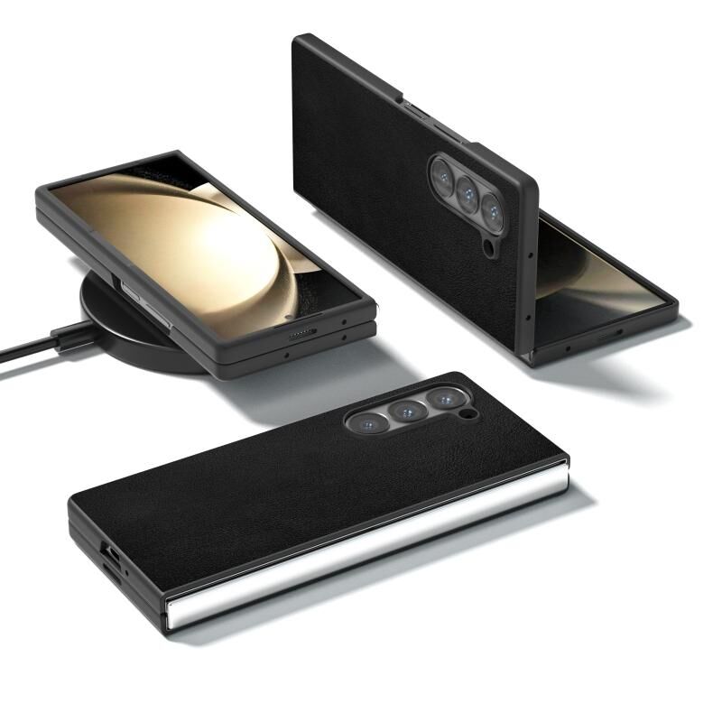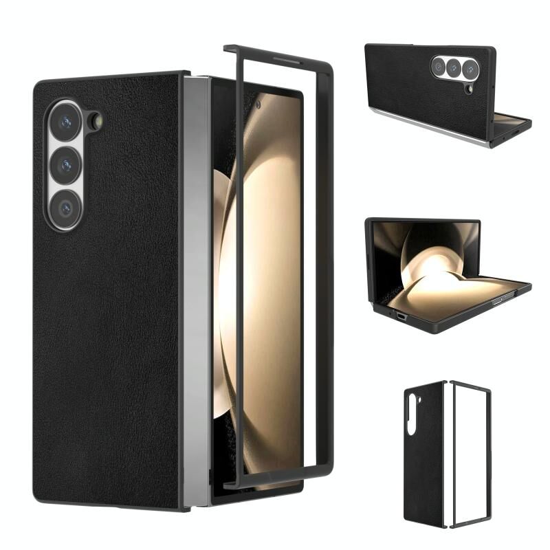 Για Samsung Galaxy Z Fold6 PU δέρμα μαύρο πλαίσιο πλήρους κάλυψης τηλέφωνο υπόθεση (μαύρο)
