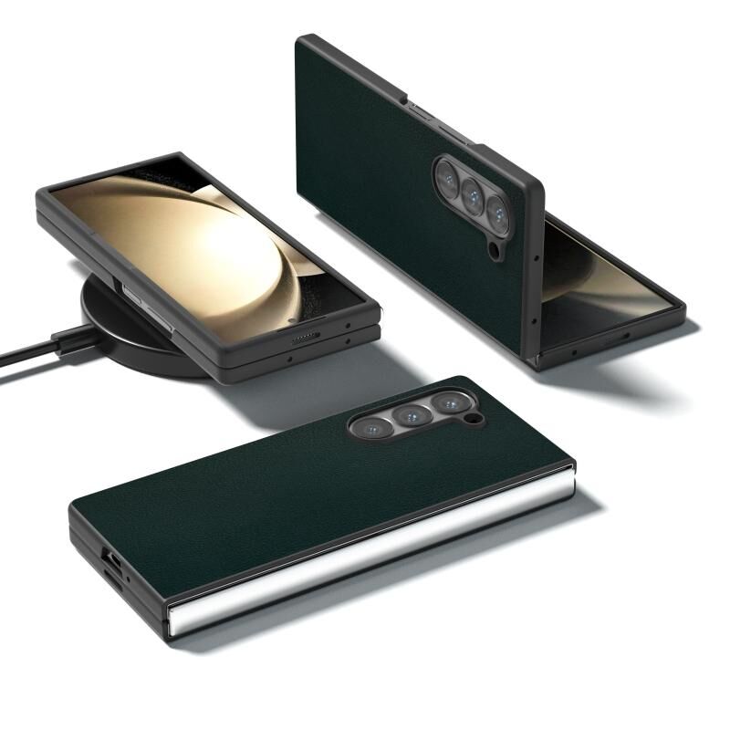 Για Samsung Galaxy Z Fold6 PU δέρμα μαύρο πλαίσιο πλήρους κάλυψης υπόθεση τηλεφώνου (πράσινο)