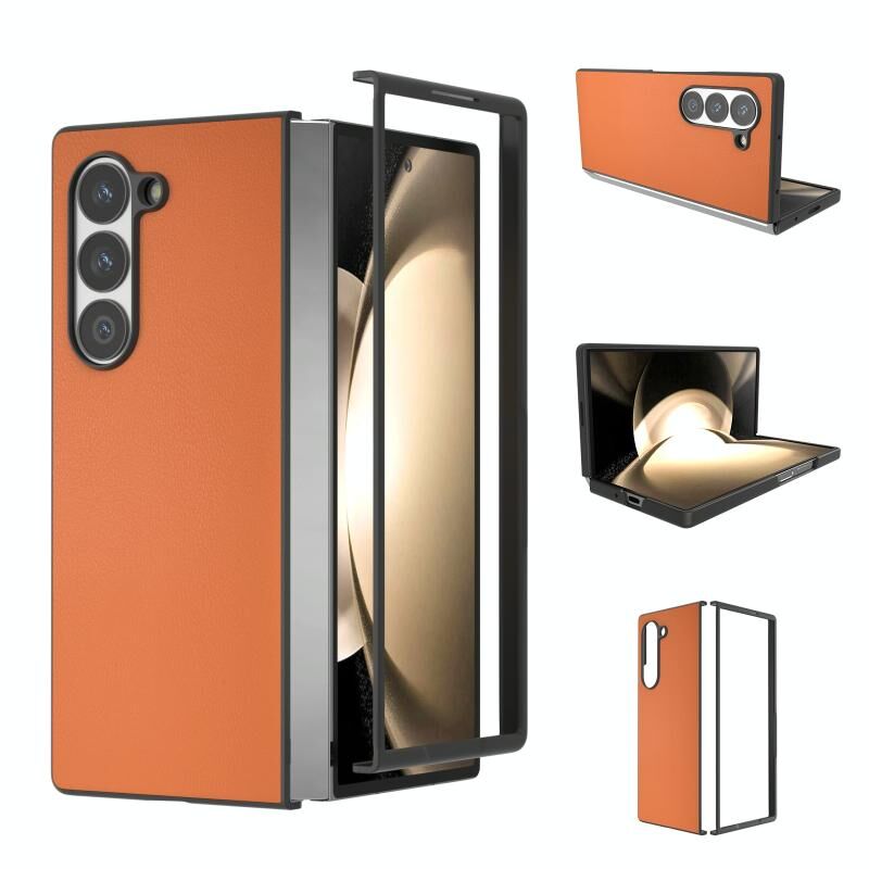 Για Samsung Galaxy Z Fold6 PU δέρμα μαύρο πλαίσιο πλήρους κάλυψης υπόθεση τηλεφώνου (πορτοκαλί)