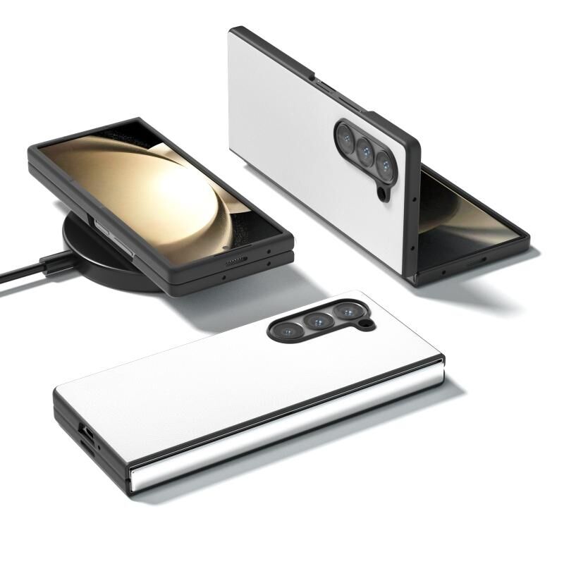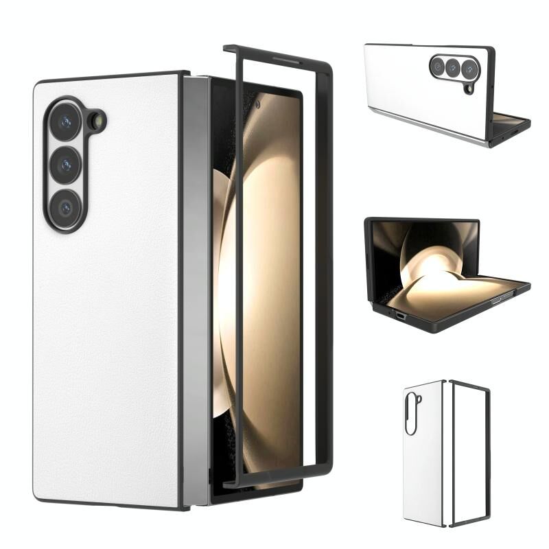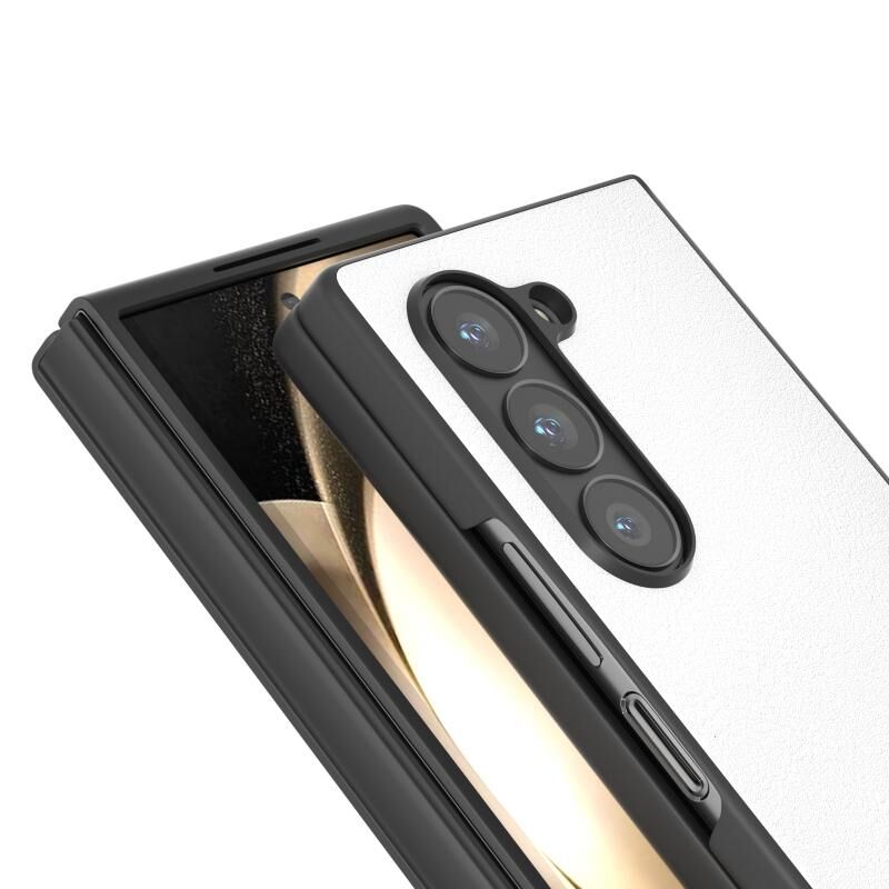 Για Samsung Galaxy Z Fold6 PU δέρμα μαύρο πλαίσιο πλήρους κάλυψης υπόθεση τηλεφώνου (λευκό)