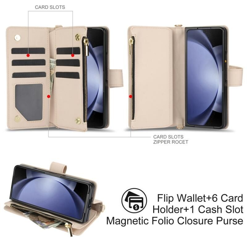 5. Λειτουργία πορτοφολιού πολλαπλών καρτών: πολλαπλές υποδοχές καρτών και τσέπες πορτοφολιού με φερμουάρ, θήκες μετρητών μπορούν να αποθηκεύσουν τις πιστωτικές σας κάρτες και τα καθημερινά μικρά χαρτονομίσματα.