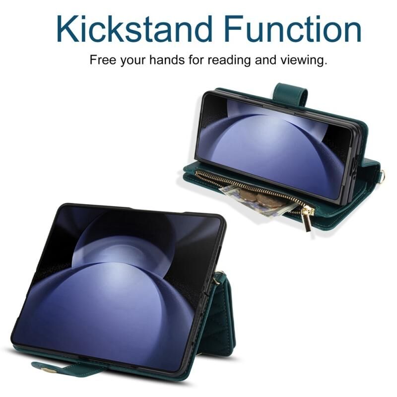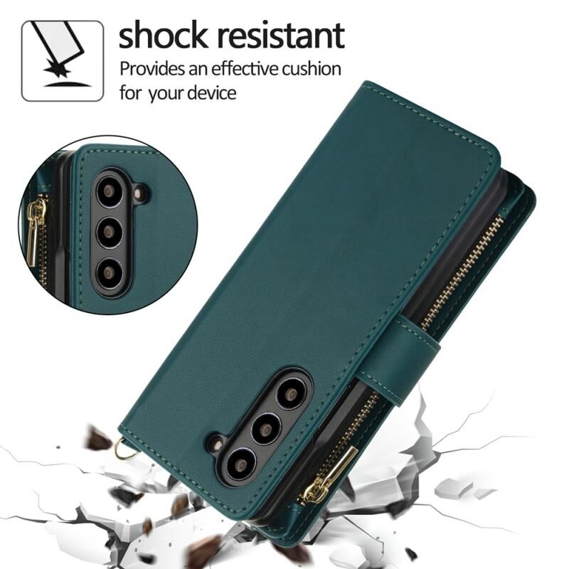 Για Samsung Galaxy Z Fold6 Rhombic φερμουάρ κάρτα πορτοφόλι δερμάτινη θήκη τηλεφώνου με κορδόνι (πράσινο)
