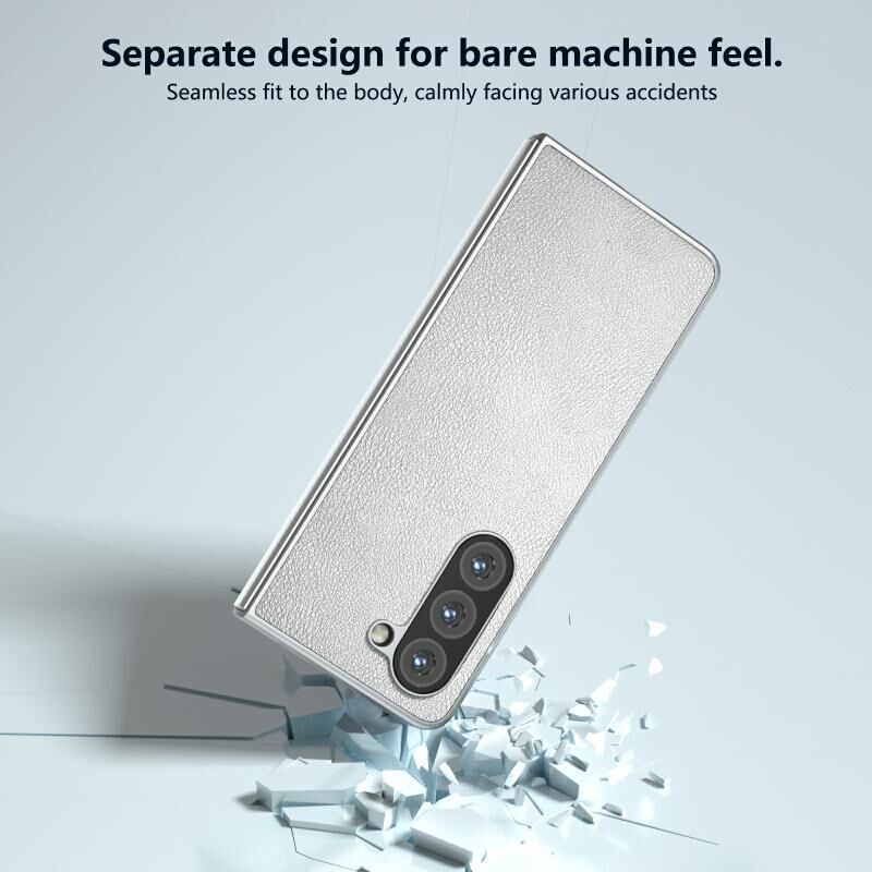 Για Samsung Galaxy Z Fold6 δέρμα αίσθηση PU δέρμα πλήρους κάλυψης υπόθεση τηλεφώνου (ασημί)