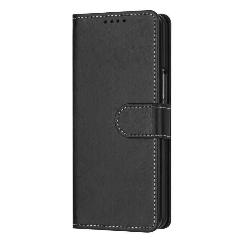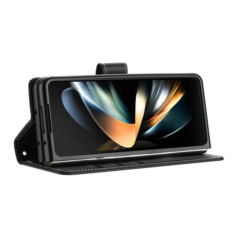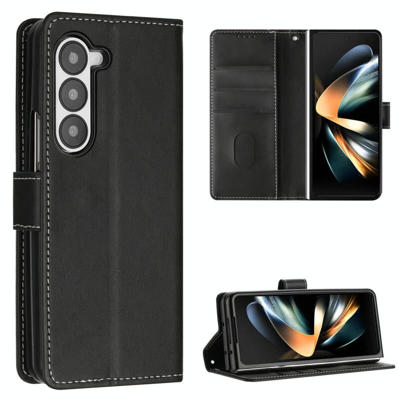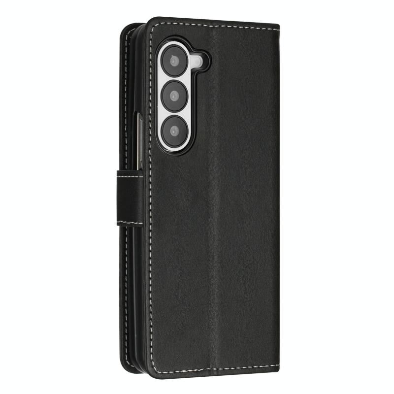 Για Samsung Galaxy Z Fold6 ραφή μοσχάρι υφή πόρπη πτυσσόμενα δερμάτινη θήκη τηλεφώνου (μαύρο)