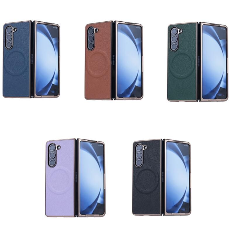 For Samsung Galaxy Z Fold6 Three Parts MagSafe Litchi Texture Fold Phone Case(Green)