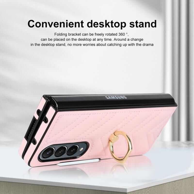 Για το Samsung Galaxy Z Fold6 V-σχήμα Πτυσσόμενη θήκη τηλεφώνου με περιστρεφόμενο δαχτυλίδι (ροζ χρυσό)