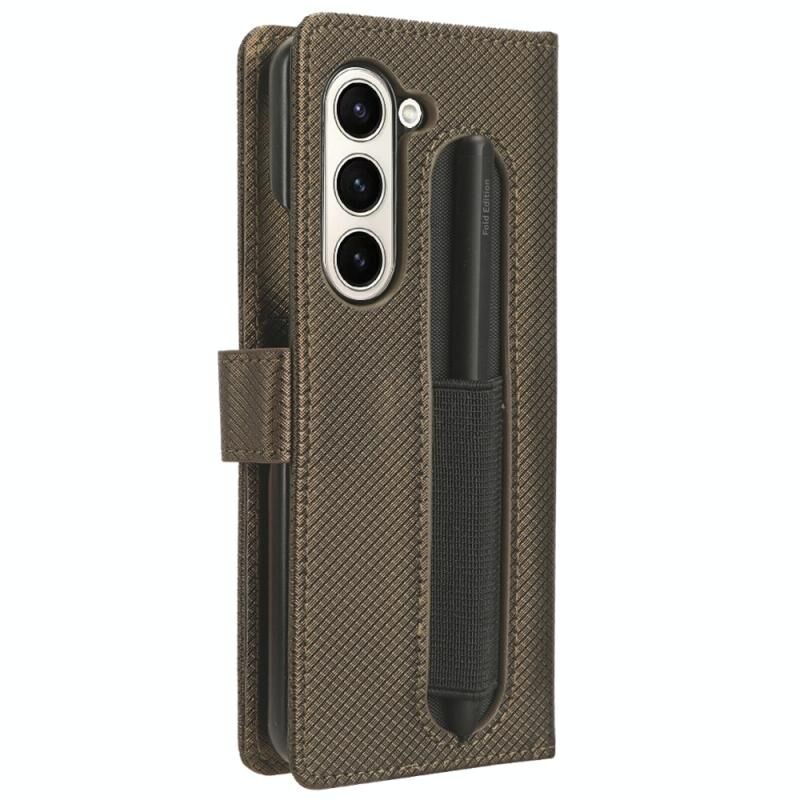 Για Samsung Galaxy Z Fold6 με υποδοχή για στυλό Diamond Texture Δερμάτινη θήκη τηλεφώνου (καφέ)