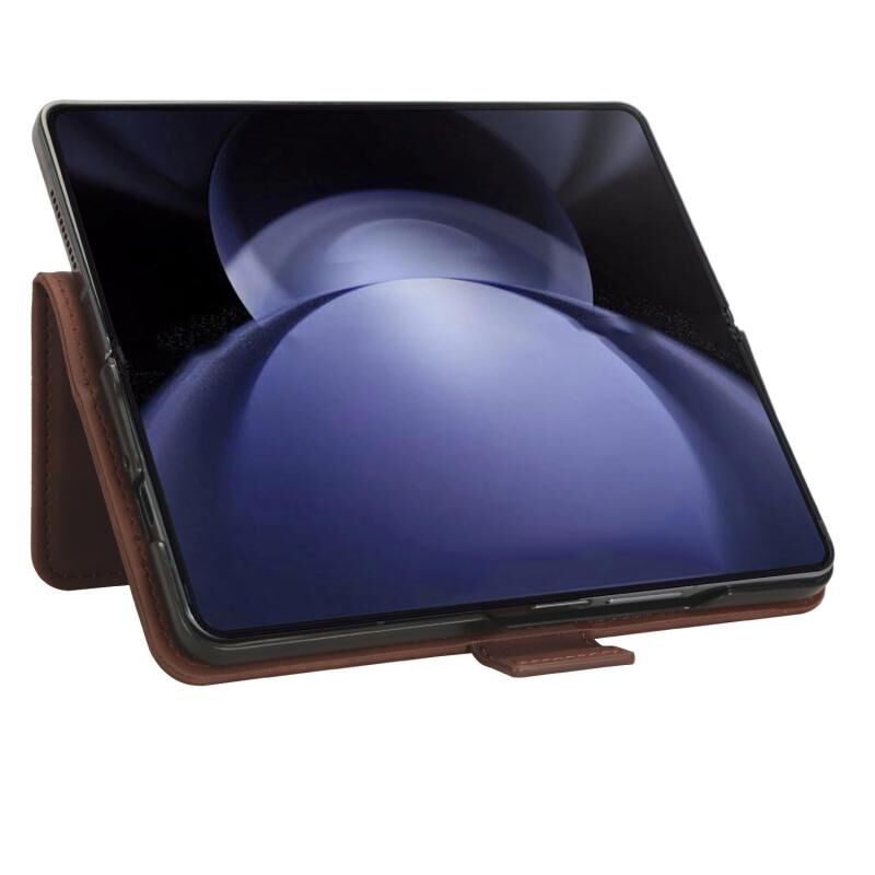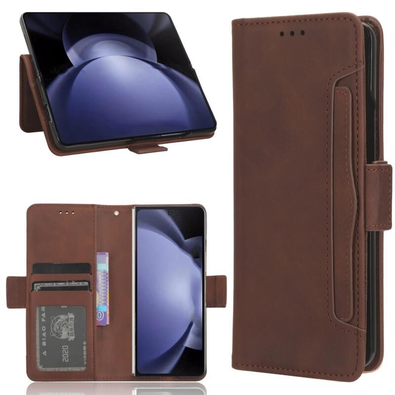 Για το Samsung Galaxy Z Fold6 με Pen Slot δέρμα αίσθηση μοσχάρι υφή υποδοχές καρτών δερμάτινη θήκη τηλεφώνου (καφέ)
