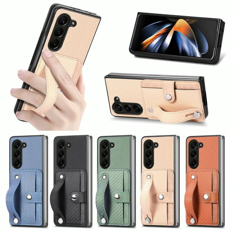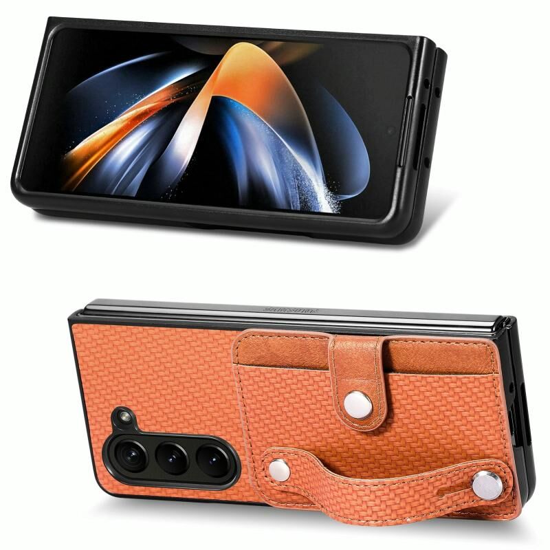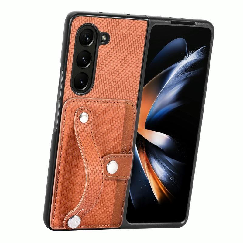 Για Samsung Galaxy Z Fold6 Wristband Kickstand κάρτα πορτοφόλι πίσω κάλυμμα θήκη τηλεφώνου (καφέ)