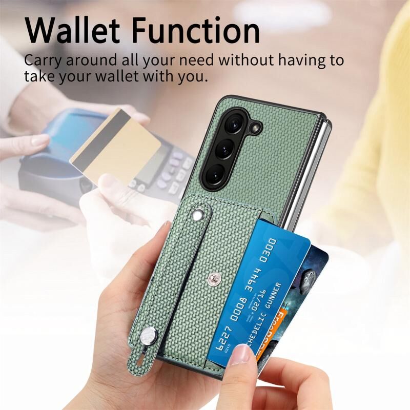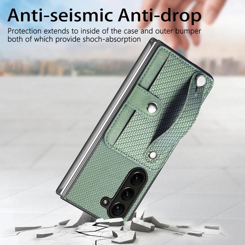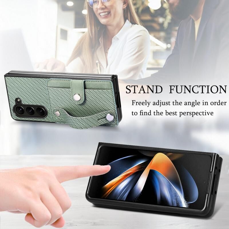 Για Samsung Galaxy Z Fold6 Wristband Kickstand κάρτα πορτοφόλι πίσω κάλυμμα θήκη τηλεφώνου (πράσινο)