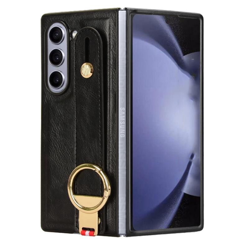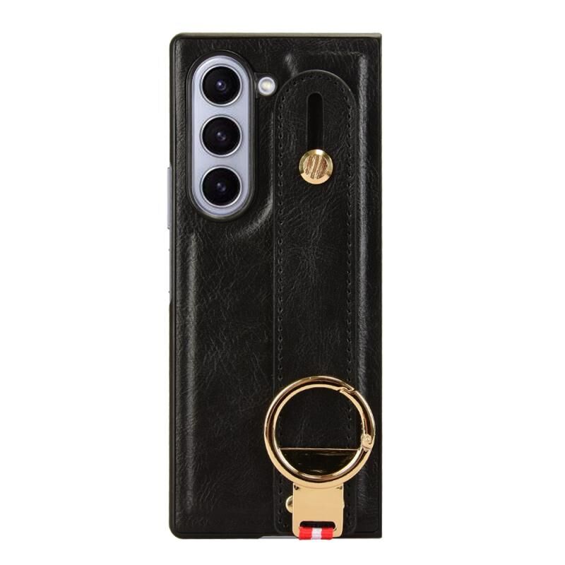 Για Samsung Galaxy Z Fold6 Wristband δέρμα πίσω θήκη τηλεφώνου (Μαύρο)