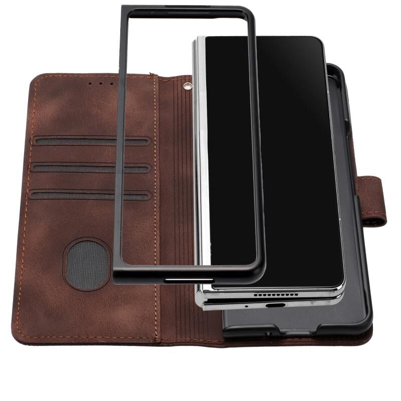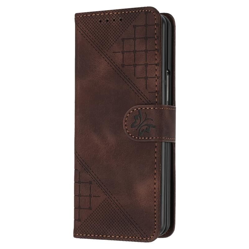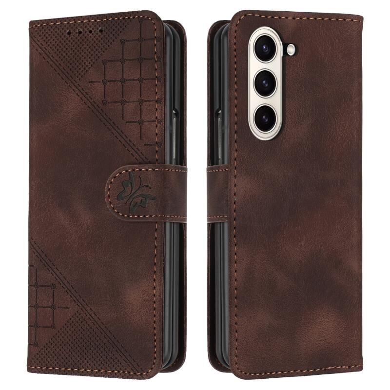 Θήκη τηλεφώνου Samsung Galaxy Z Fold6 YX0080 από δέρμα με σχέδιο ανάγλυφου πλέγματος και πεταλούδας, με κορδόνι (Καφέ)