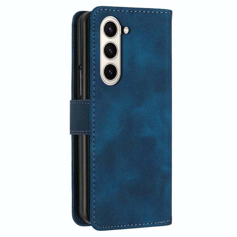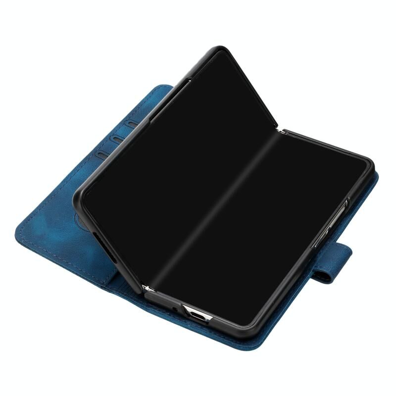 Θήκη τηλεφώνου Samsung Galaxy Z Fold6 YX0080 από δέρμα με σχέδιο πεταλούδας σε πλέγμα και λουρί (Σκούρο Μπλε)