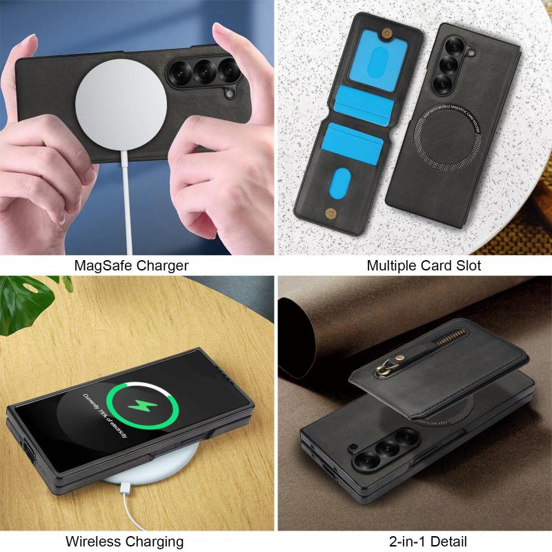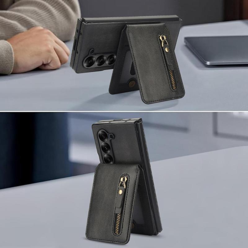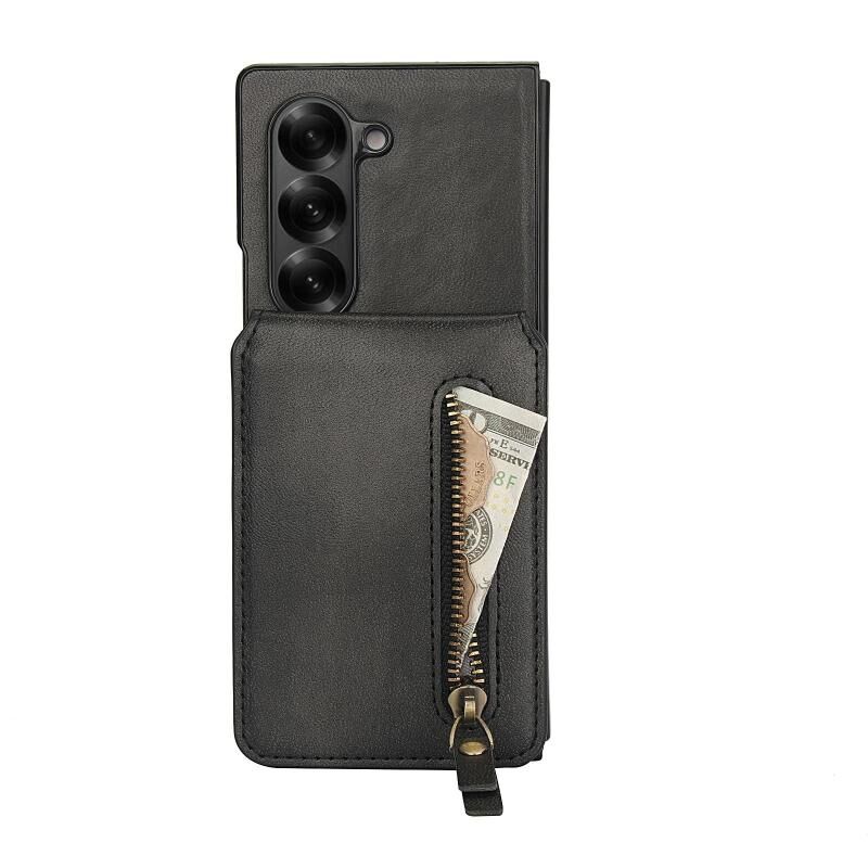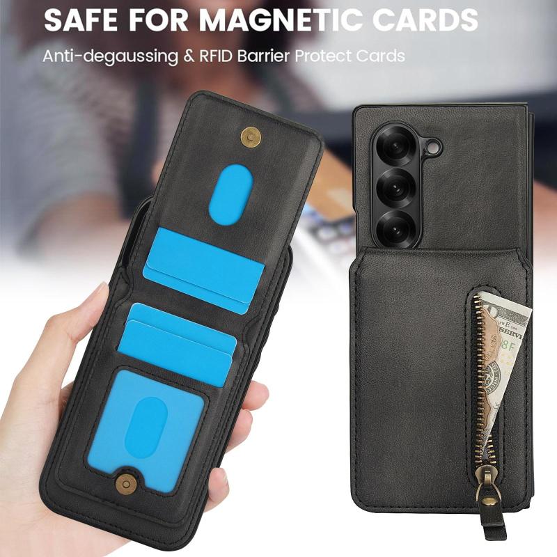 For Samsung Galaxy Z Fold6 Zipper Wallet Split MagSafe Leather Back Phone Case(Black)