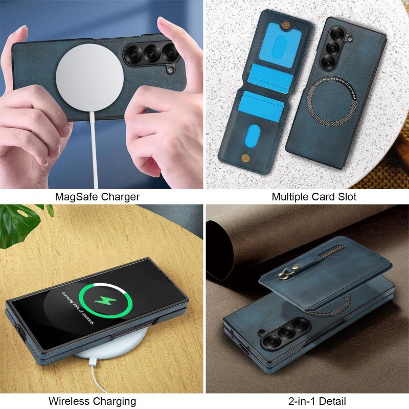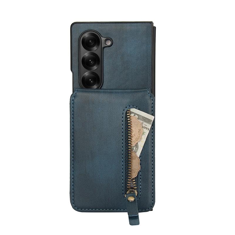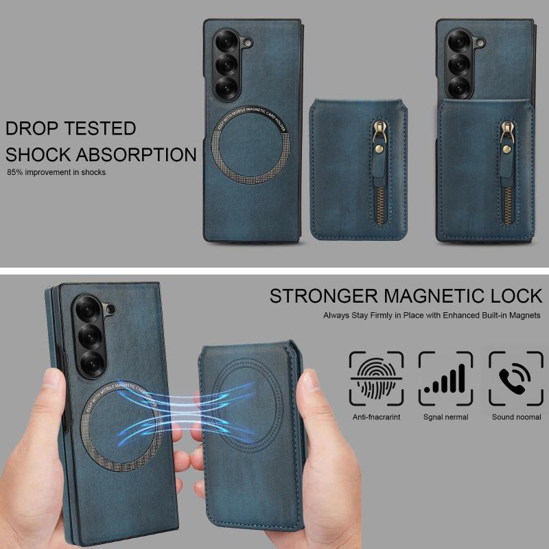 For Samsung Galaxy Z Fold6 Zipper Wallet Split MagSafe Leather Back Phone Case(Blue)