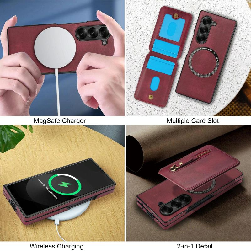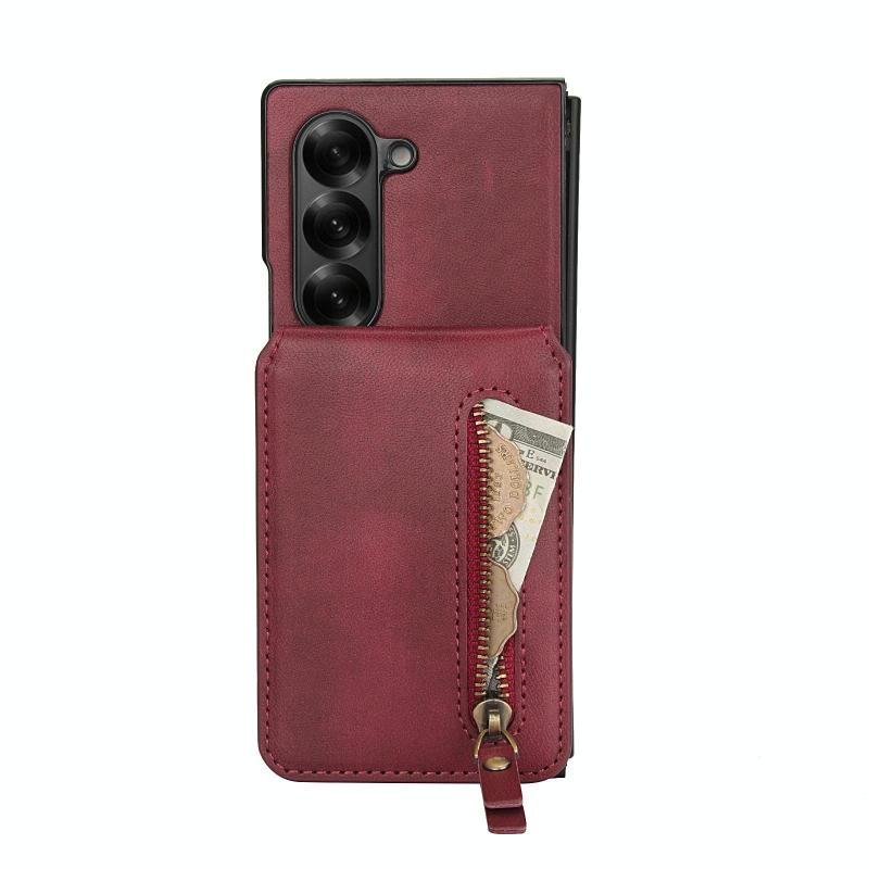 For Samsung Galaxy Z Fold6 Zipper Wallet Split MagSafe Leather Back Phone Case(Red)