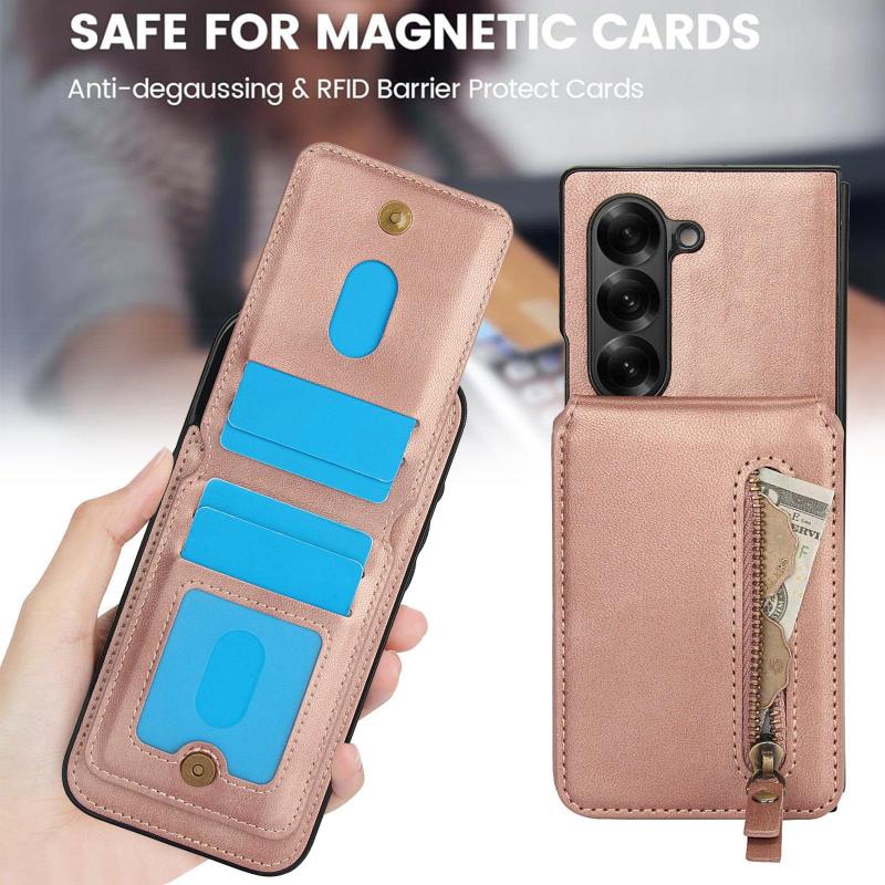 For Samsung Galaxy Z Fold6 Zipper Wallet Split MagSafe Leather Back Phone Case(Rose Gold)