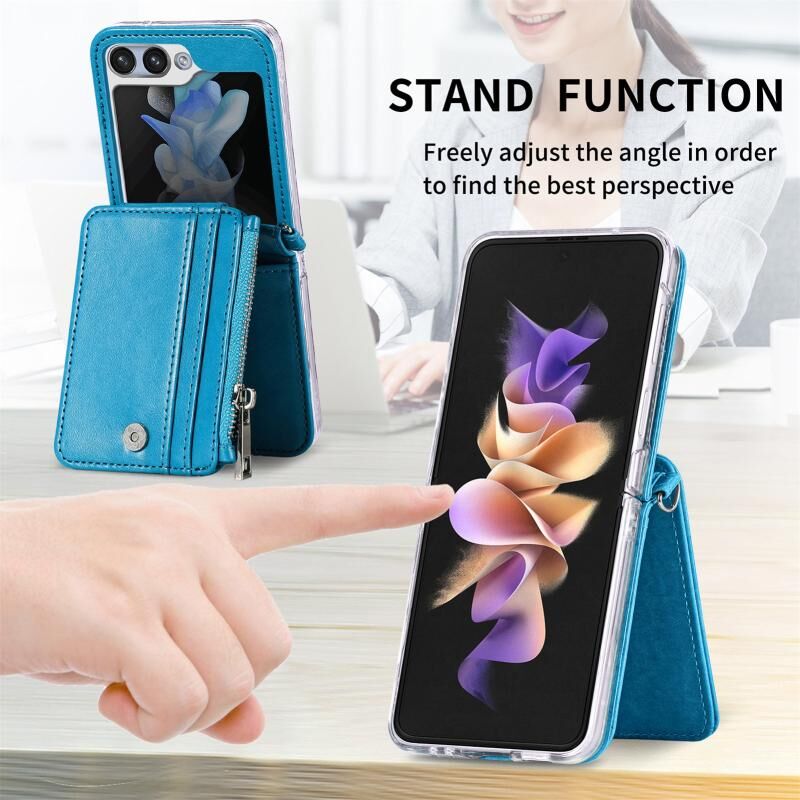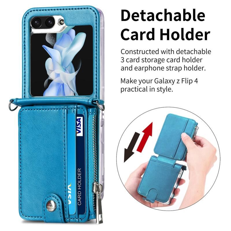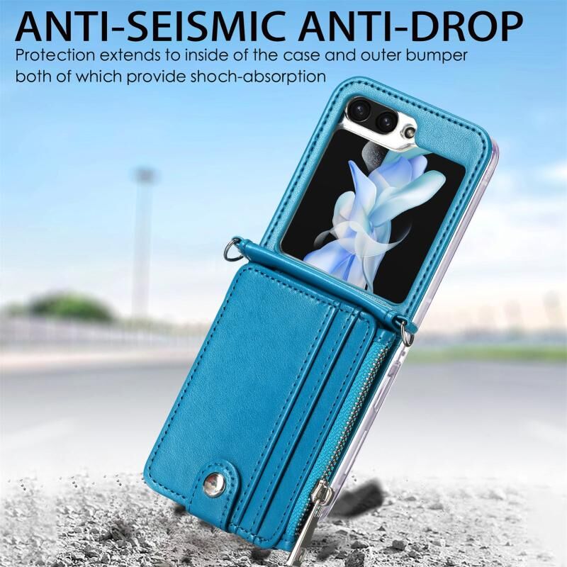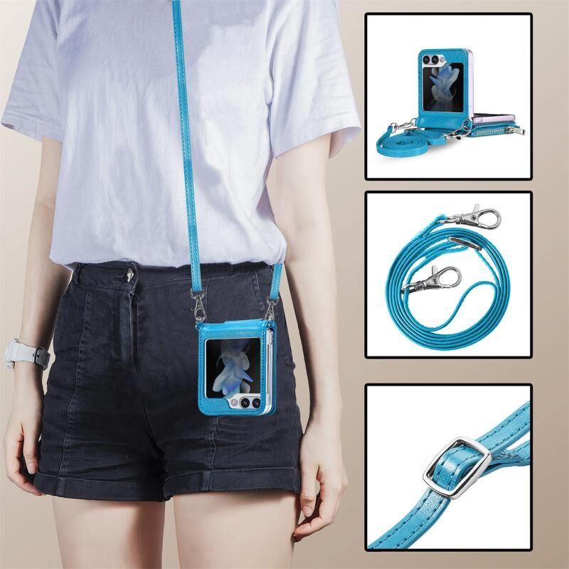Για Samsung Galaxy ZFlip 6 5G Crossbody 2 σε 1 πορτοφόλι δερμάτινη θήκη τηλεφώνου (μπλε)