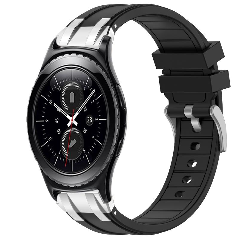 For Samsung Gear S2 Classic 20mm Quick Release Silver Buckle Royal Silicone Watch Band(Black)