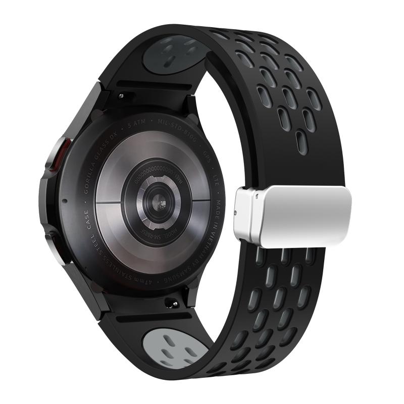 For Samsung Gear S2 Classic Two Color Magnetic Folding Silver Buckle Silicone Watch Band(Black Gray)