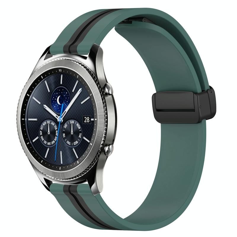 Για Samsung Gear S3 Classic 22mm Πτυσσόμενο μαγνητικό κούμπωμα ζώνη ρολογιού σιλικόνης (πράσινο + μαύρο)