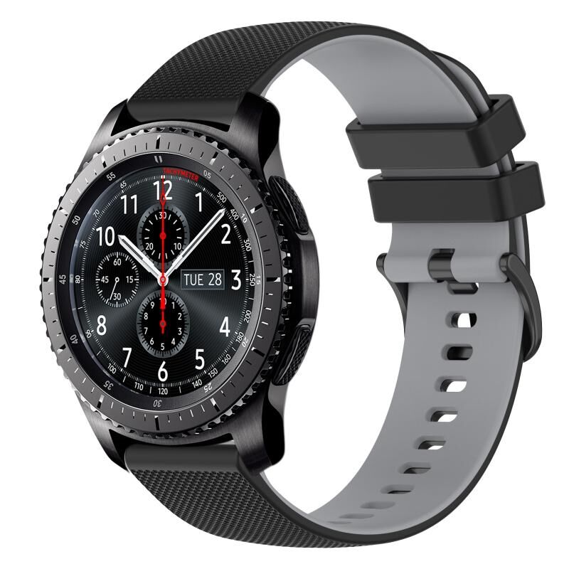 For Samsung Gear S3 Frontier 22mm Checkered Two-Color Silicone Watch Band(Black+Grey)