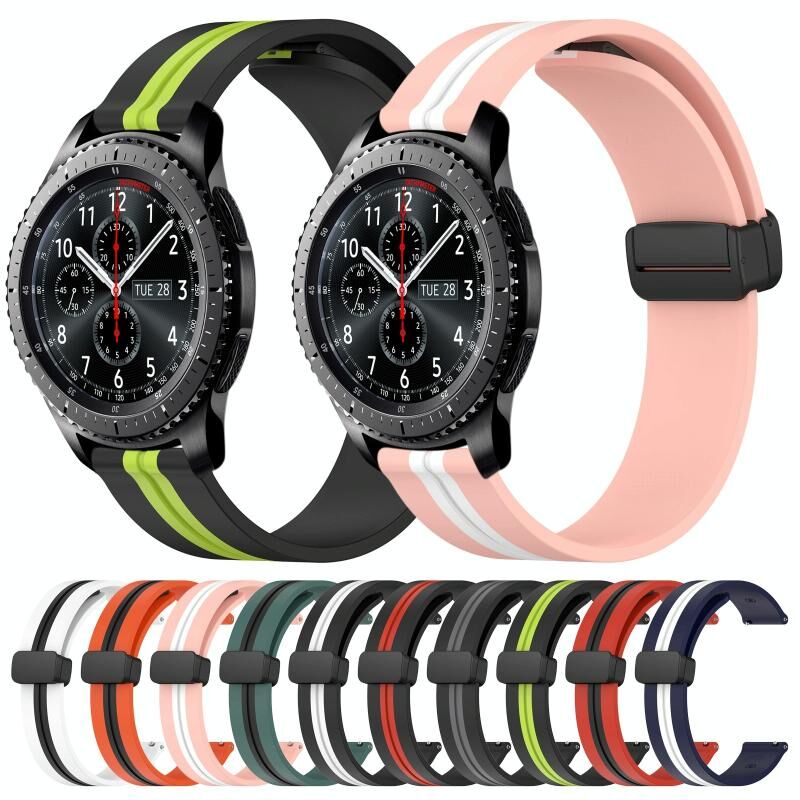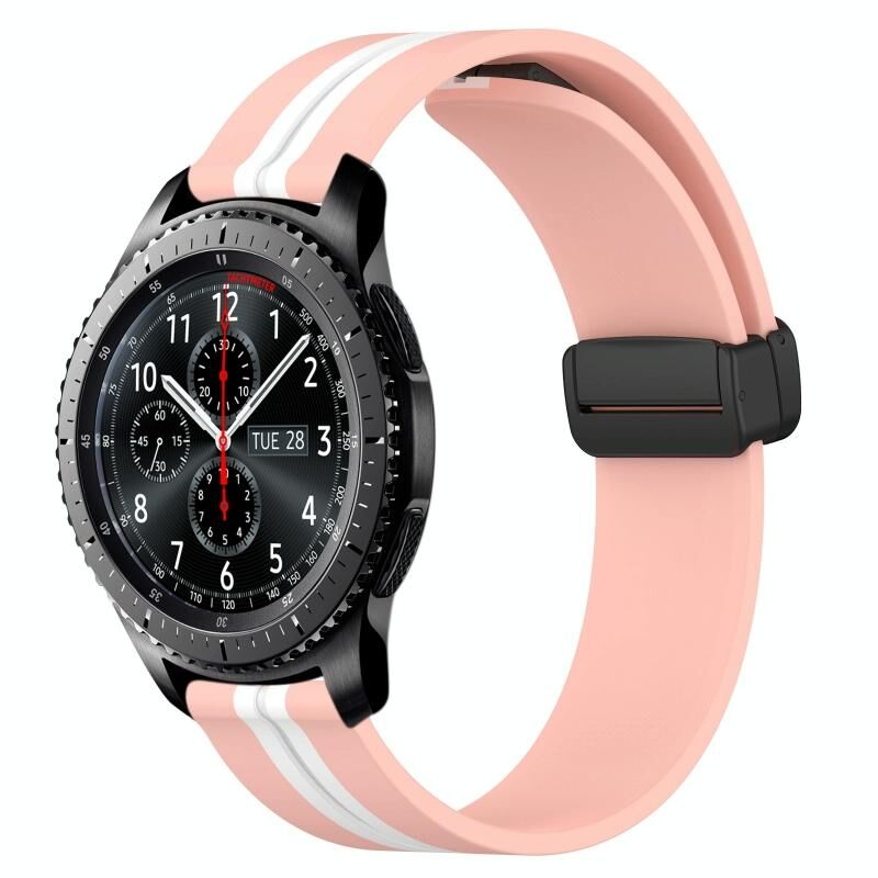 Για Samsung Gear S3 Frontier 22mm Πτυσσόμενο μαγνητικό κούμπωμα ζώνη ρολογιού σιλικόνης (ροζ+λευκό)